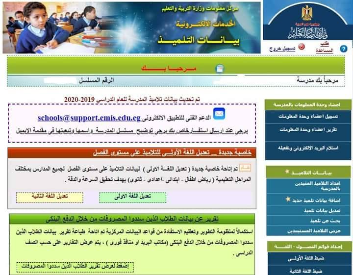 أتاحت وزارة التربية والتعليم والتعليم الفني خاصيتان جديدتان على استمارة بيانات التلميذ، وهما( تعديل اللغة الأولى - أسماءالطلاب الذين سددوا المصروفات ).