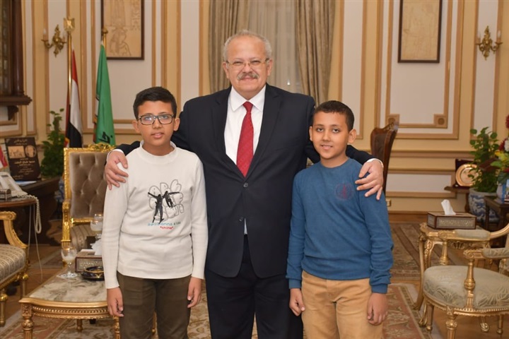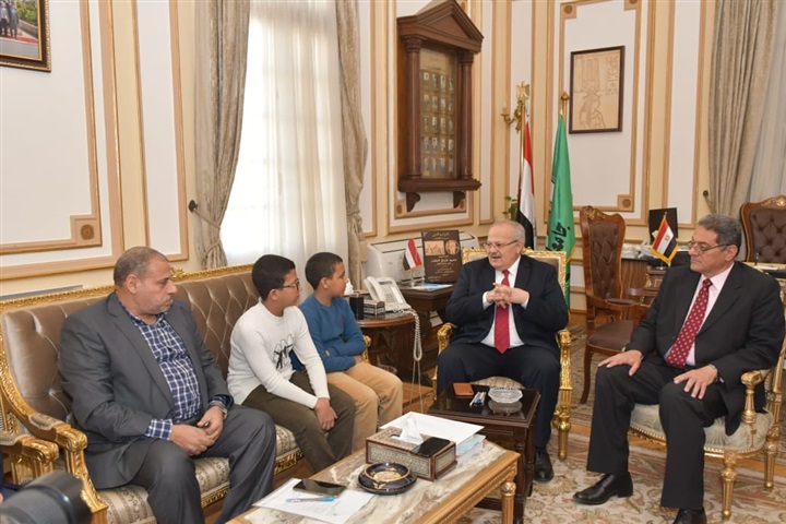 استجابة لكشكول.. رئيس جامعة القاهرة يستقبل "طفل الرياضات المعجزة" (صور)