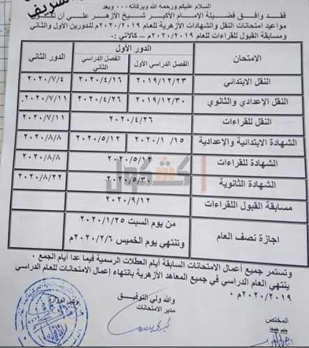 ننشر المواعيد الجديدة لامتحانات النقل والشهادات بالأزهر