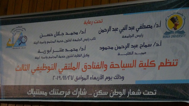 أكد الدكتور مصطفى عبد النبي، رئيس جامعة المنيا أنه في إطار اهتمام الجامعة بطلابها وخريجيها والمساهمة في توفير فرص عمل ملائمة تُلبي تخصصات خريجي كليات الجامعة؛ نظمت كلية السياحة والفنادق بجامعة المنيا "الملتقي التوظيفي الثالث" تحت شعار"الوطن سكن.. شارك فرصتك مستنياك"، وذلك بمشاركة 32 مؤسسة فندقية من سلاسل الفنادق العالمية، وشركات السياحة والطيران والتدريب الفندقي.