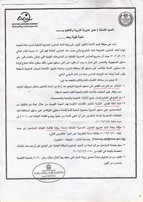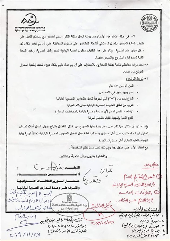 الموكلة إليهم بالمدارس المصرية اليابانية.