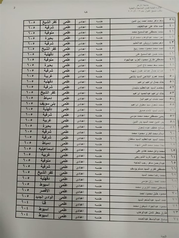 ننشر أسماء طلاب "هندسة القاهرة" المقبولين بالمدن الجامعية الأزهرية