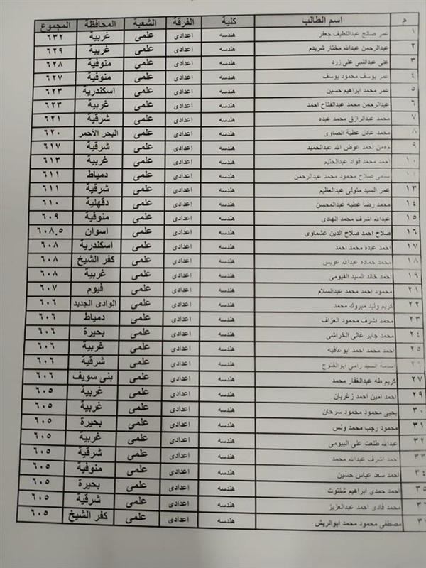 وينشر كشكول أسماء المقبولين بالمدين الجامعية من طلاب كلية الهندسة بنين بالقاهرة.