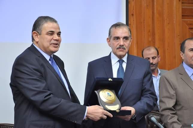 وأهدى دسوقي، درع الجامعة لمحافظ كفر الشيخ، كما أهدى المحافظ درع المحافظة