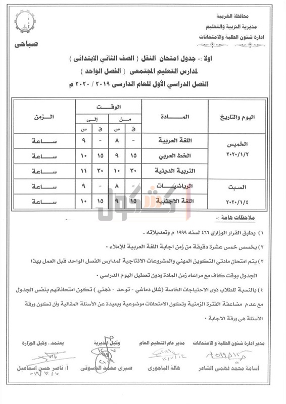 ننشر جداول امتحانات نصف العام بـ"تعليم الغربية"
