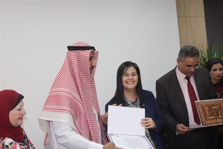 وأهدت مصطفى، درع تكريم الكلية، لوفود الدول المشاركة في ملتقي الثقافات الثاني،