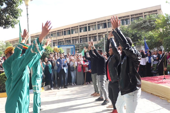 وتضمنت الأجواء الاحتفالية عروض فنية موسيقية راقصة، لفرقة الدبكة السورية، والفلسطينية، إضافة إلى العروض الراقصة لفرقتي الصومال وتشاد الفنية، حيث تفاعل الطلاب بالغناء والتصفيق المصاحب لعروض تلك الفرق الموسيقية، إضافة إلى تقديم بعض الفقرات الغنائية المسجلة للفنانين المصريين.