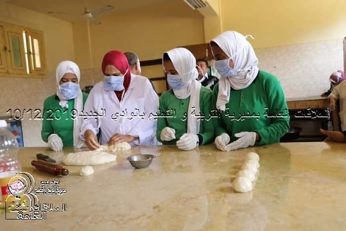 وشملت الجولة قسم الصناعات بالمدرسة، متابعًا التدريبات العملية لطالبات المدرسة على صناعة الفطائر والمعجنات والعديد من المنتجات داخل القسم، مشيدًا بالعمل والمجهودات المبذولة.