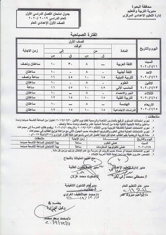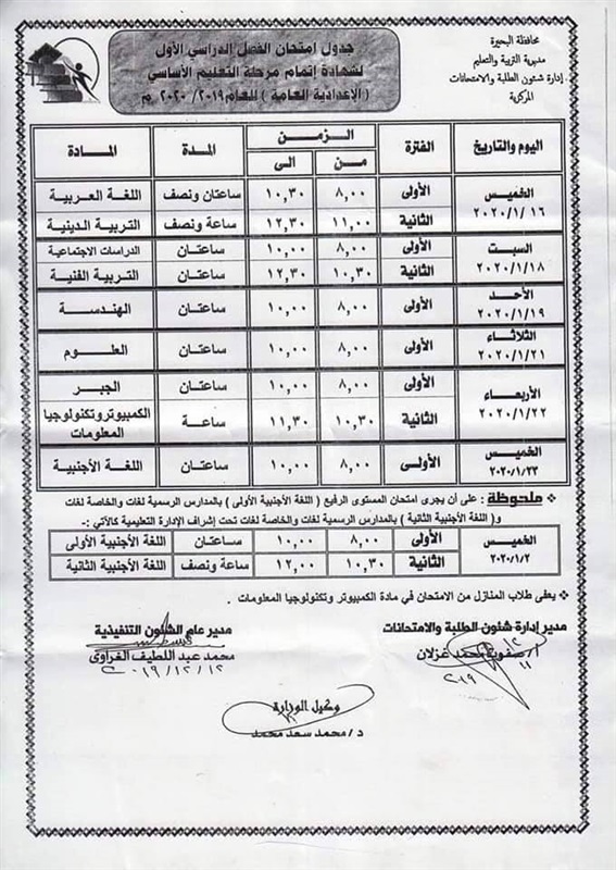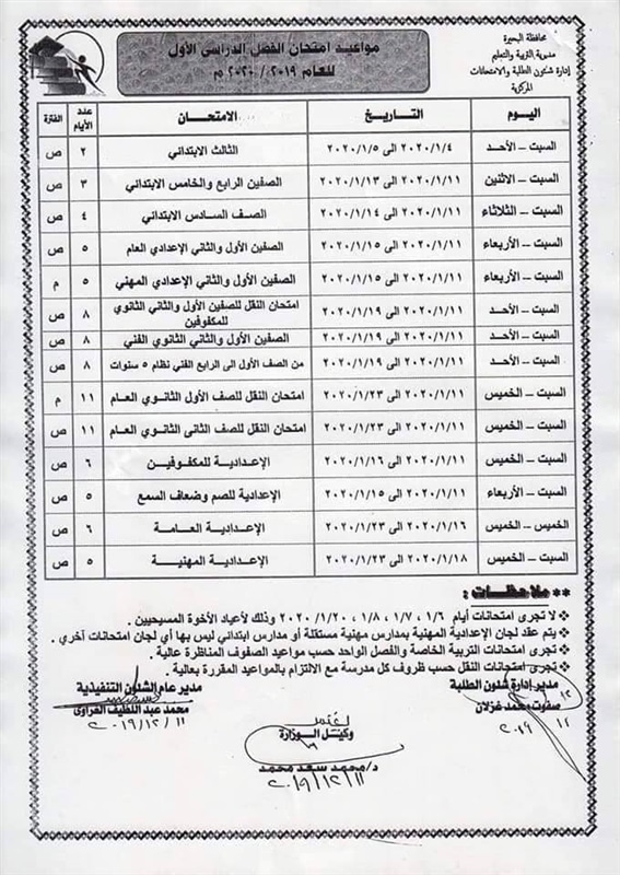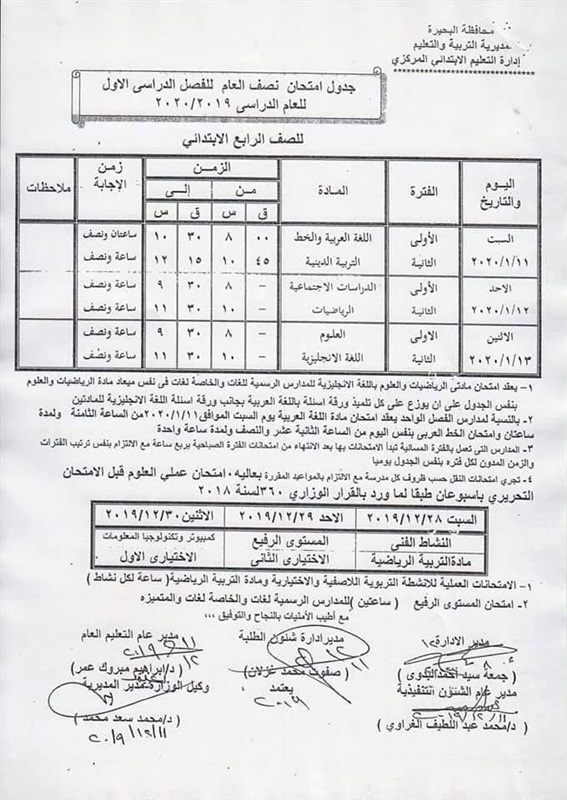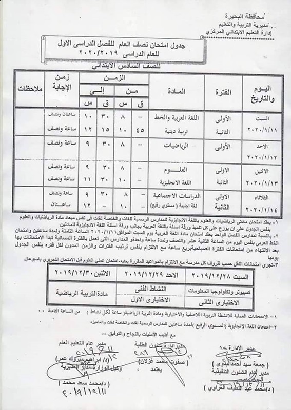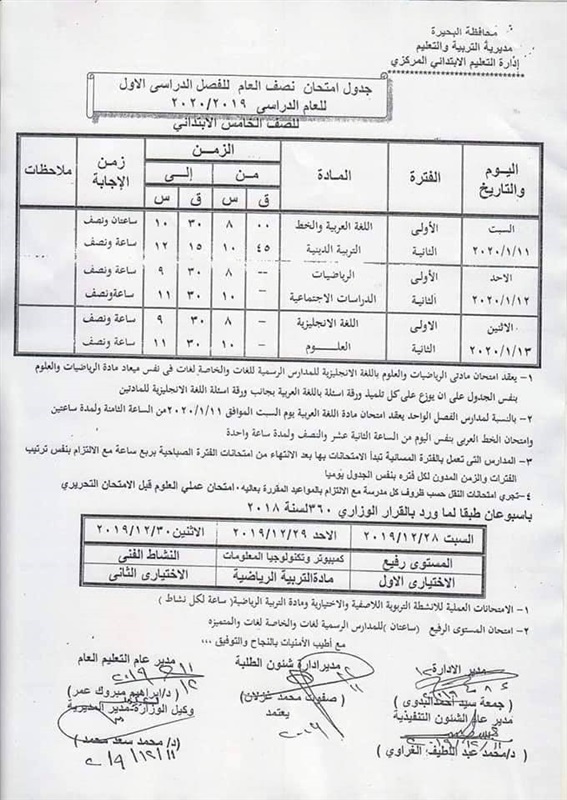ننشر جدول امتحانات صفوف النقل بالبحيرة