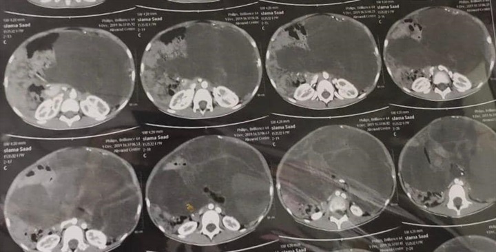 أثبتت وجود ورم ضخم في بطن الطفلة يستدعى استئصاله.