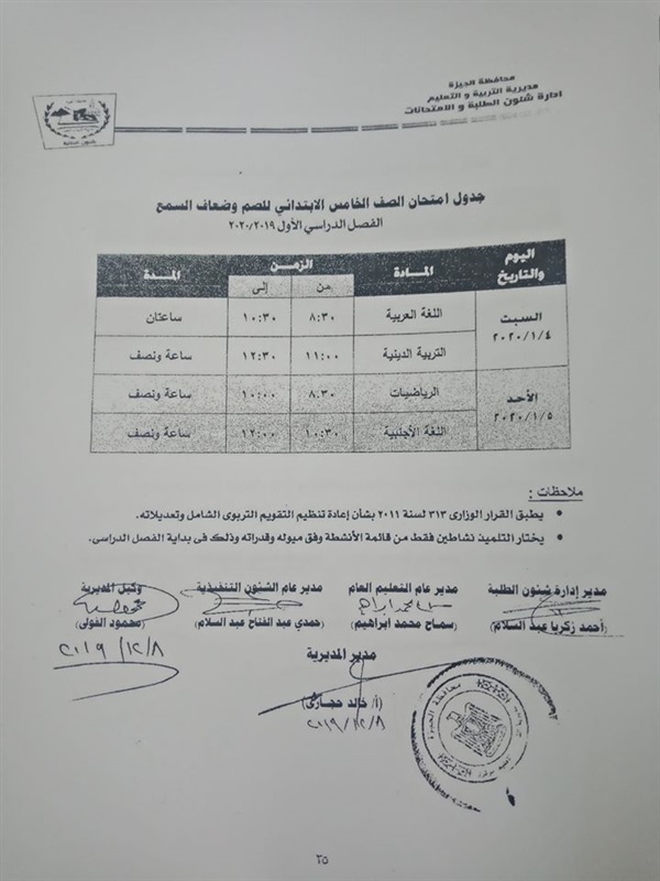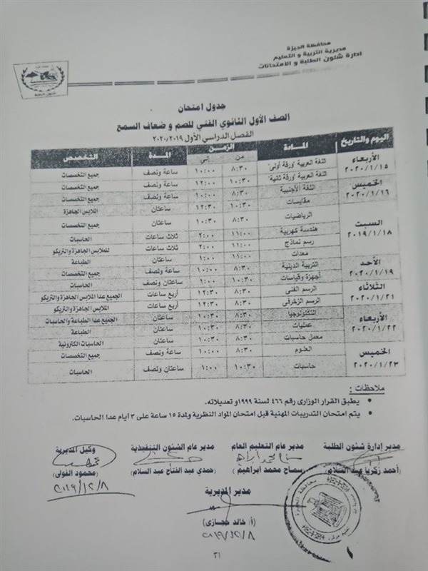 أعلنت مديرية التربية والتعليم بالجيزة جداول امتحانات الفصل الدراسي الأول لكافة الصفوف الدراسية لمدارس الصم وضعاف السمع لعام 2019/2020 بمحافظة الجيزة.