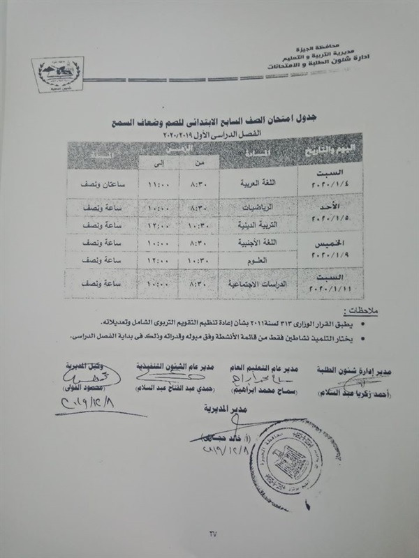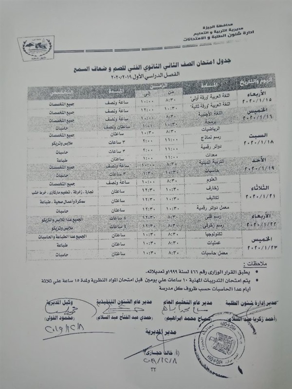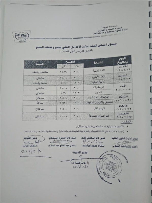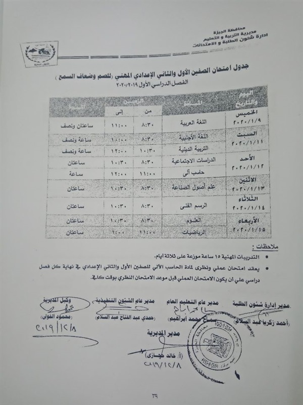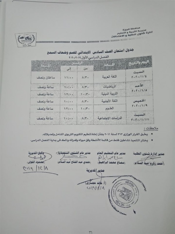 ننشر جدول امتحانات الترم الأول لمدارس الصم وضعاف السمع بالجيزة