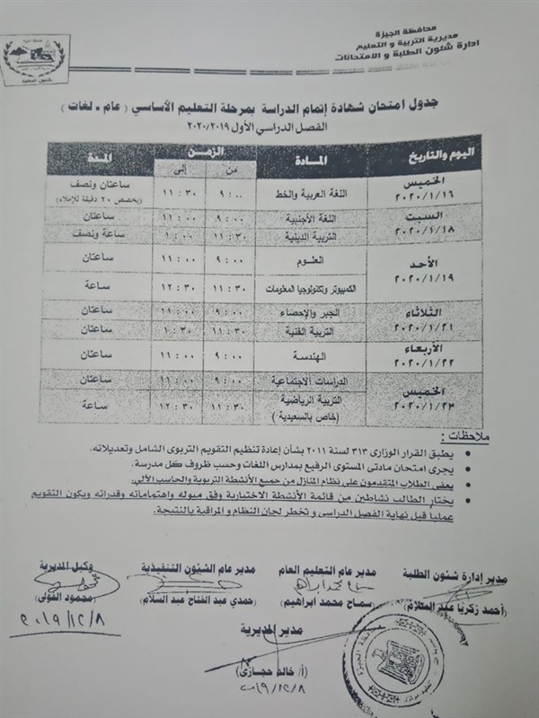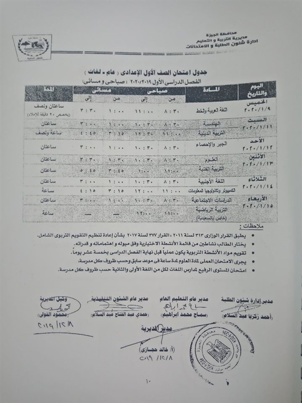 ننشر جدول الفصل الدراسي الأول للمرحلة الإعدادية بمدارس الجيزة
