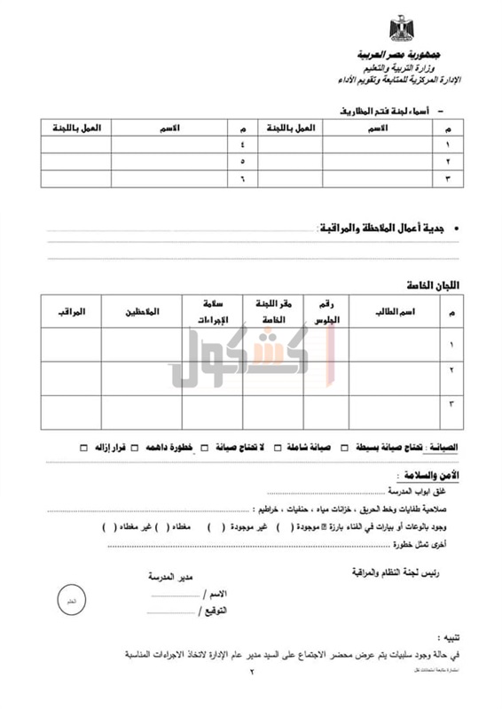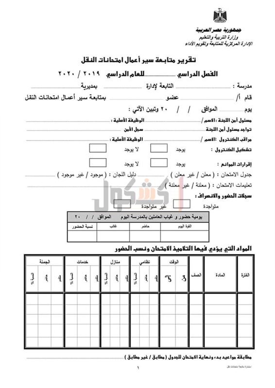 "كشكول" شكل استمارة متابعة امتحانات صفوف النقل، ويمكن الاطلاع عليها