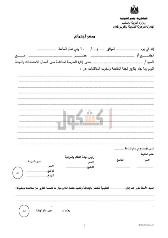 والتعليم علي وضع استمارة لمتابعة سير أعمال الامتحانات بالمدارس.