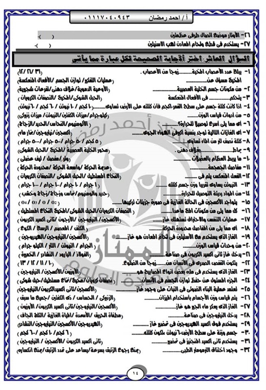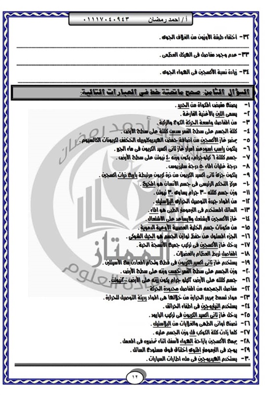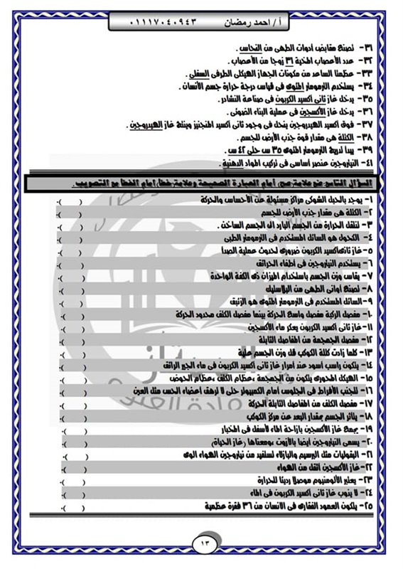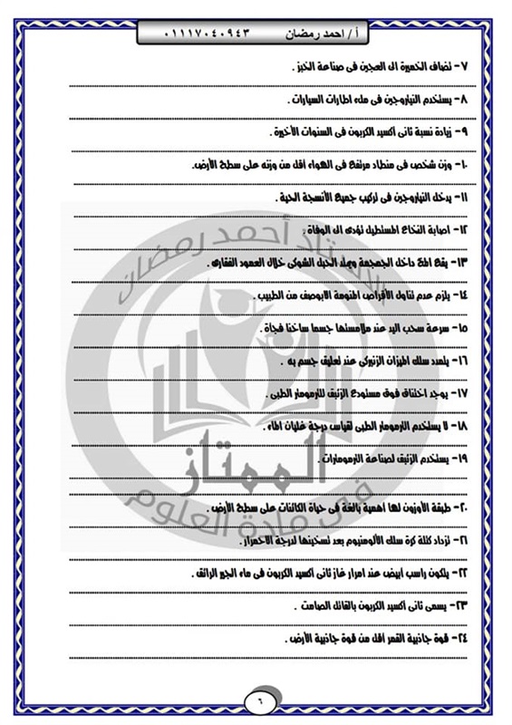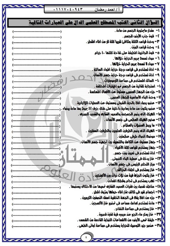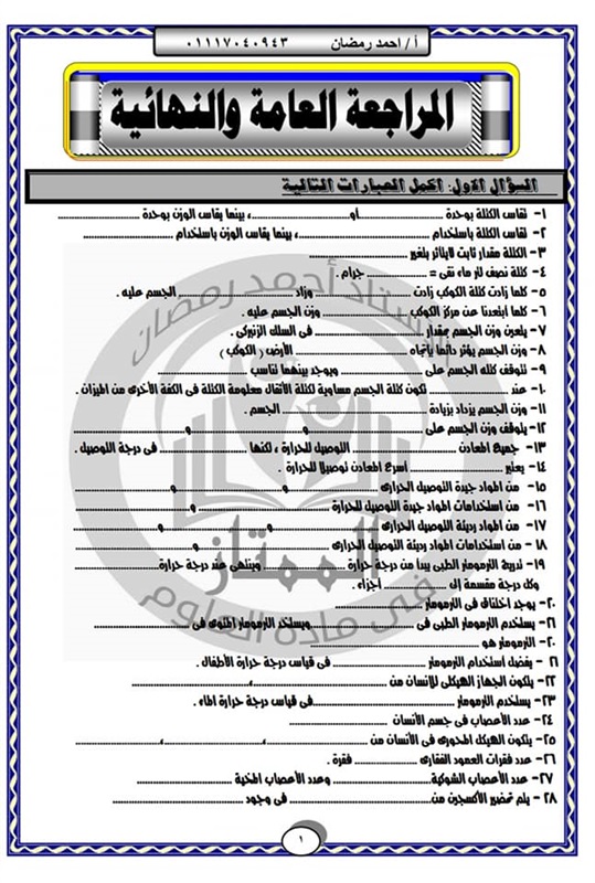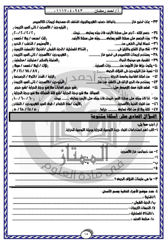 ننشر المراجعة النهائية لمادة العلوم لطلاب السادس الابتدائي