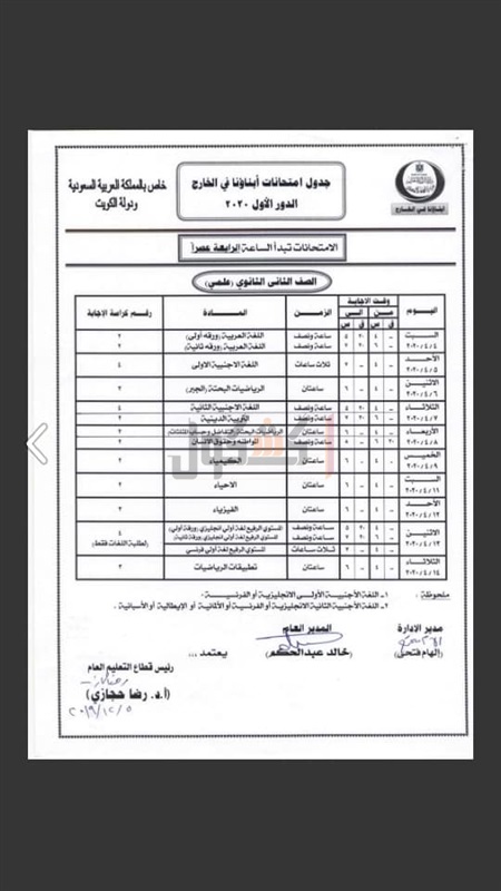 جداول امتحانات الدور الاول لامتحانات الطلاب المصريين بنظام "أبناؤنا فى الخارج"