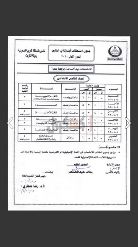 بالصور.. جدول امتحانات "أبناؤنا بالخارج" للعام الدراسي 2019/2020