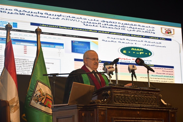 وقال الدكتور محمد عثمان الخشت رئيس جامعة القاهرة، خلال كلمته، إن الجامعة نجحت بالأرقام والوقائع والشهادات الدولية الموثقة والمؤشرات العالمية الثابتة في تحقيق أهداف استراتيجيتها في مختلف المجالات التي طرحتها، ومنهاج العمل الذي حددته وفق برامج زمنية وفي إطار رؤية شاملة تتوافق مع معايير جامعات الجيل الثالث ورؤية مصر 2030.