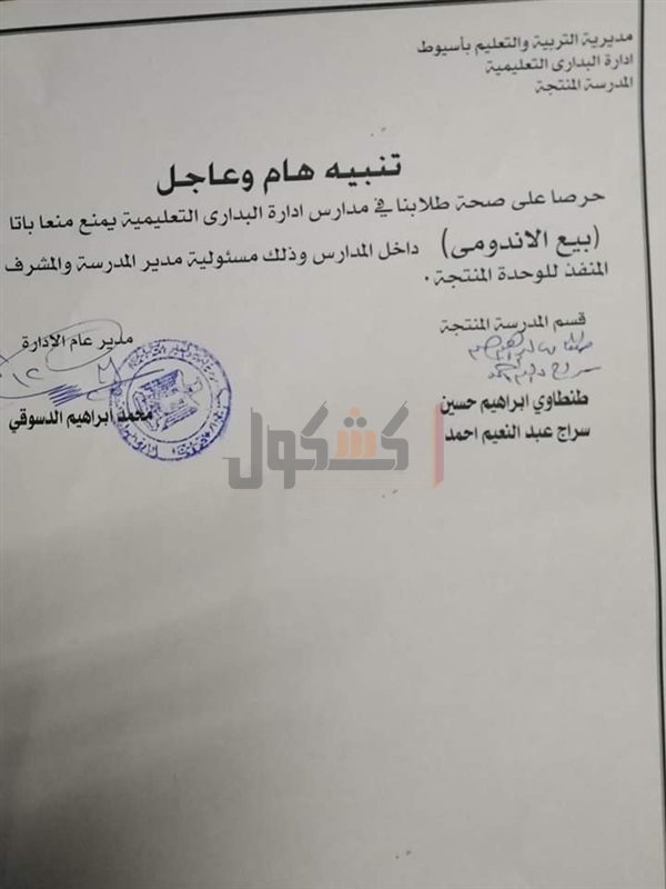 أصدرت مديرية التربية والتعليم باسيوط وبصفة إدارة البراري تنبيه هام وعاجل, بمنع بيع الشعرية سريعة التحضير داخل المدارس.