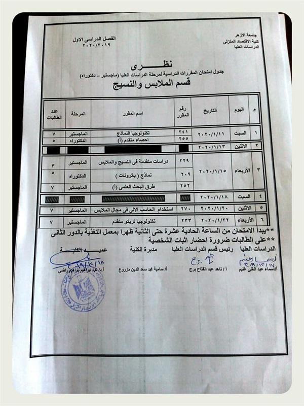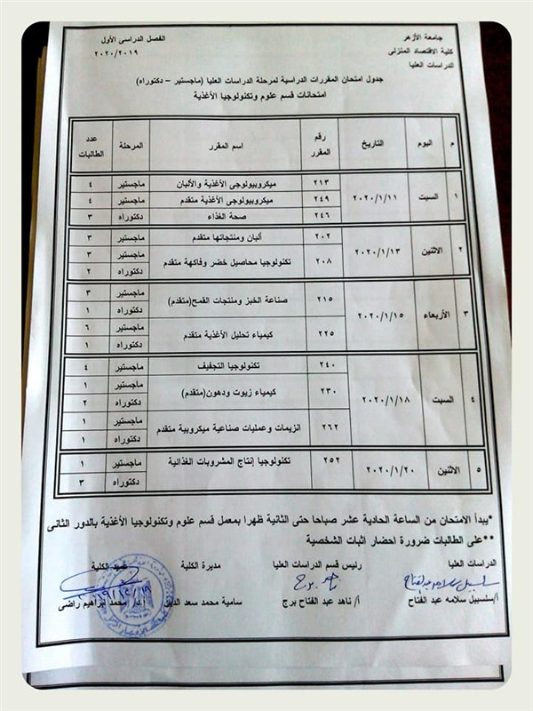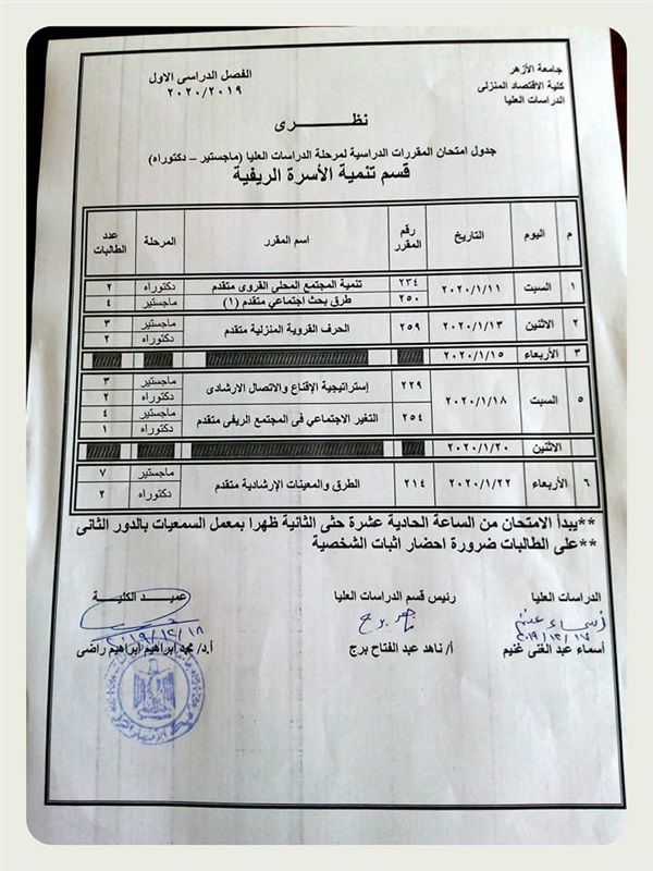 امتحانات جامعة الأزهر.. جدول الدور الأول لكلية "اقتصاد منزلى" طنطا