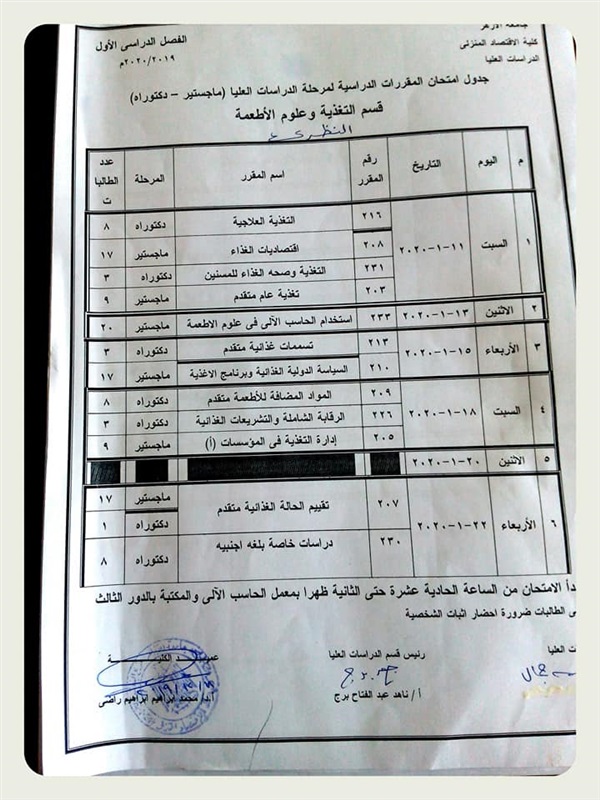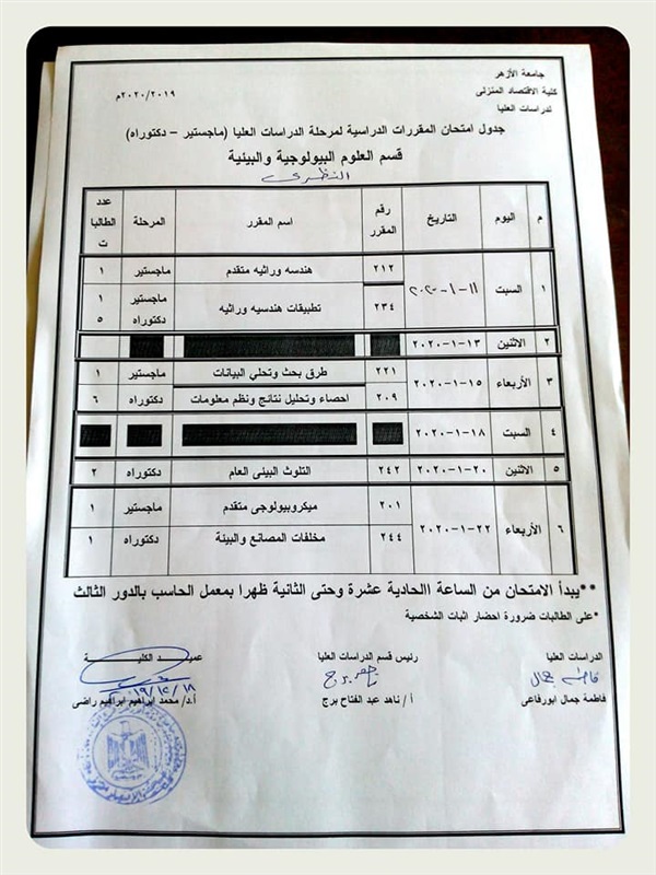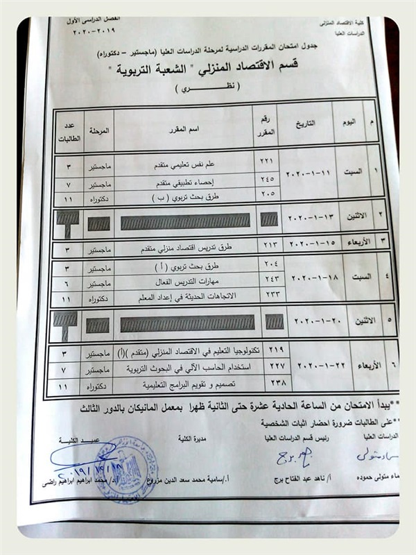 جديرًا بالذكر، أنه تبدا امتحانات التخلفات فى الرابع والعشرون من شهر ديسمبر الجارى حتى الخامس من شهر يناير، وذلك ايضًا وفقًا للجدول المعلن من قبل ادارة الجامعة فى العام الدراسى الحالى.