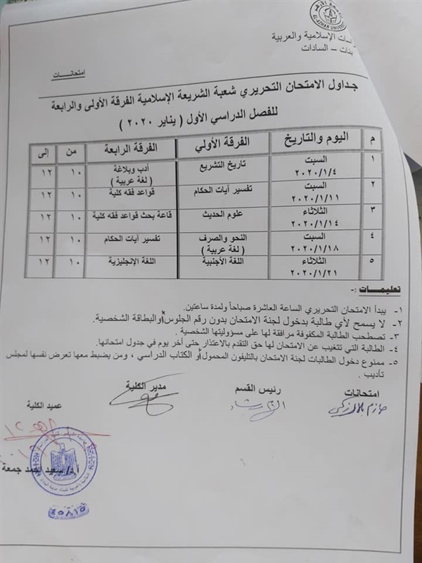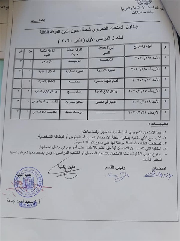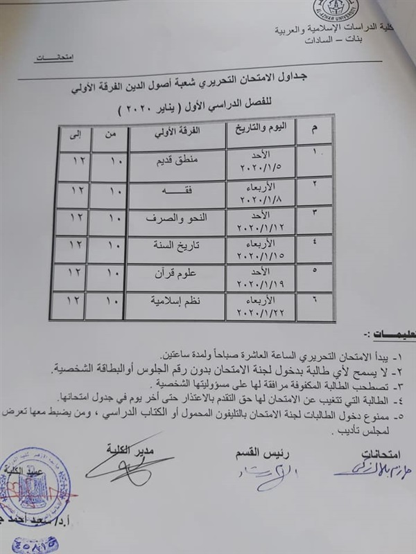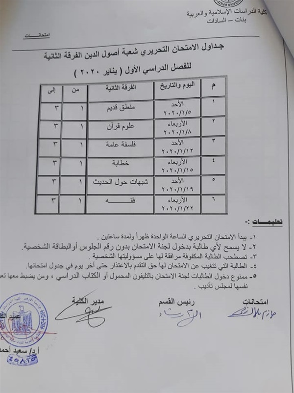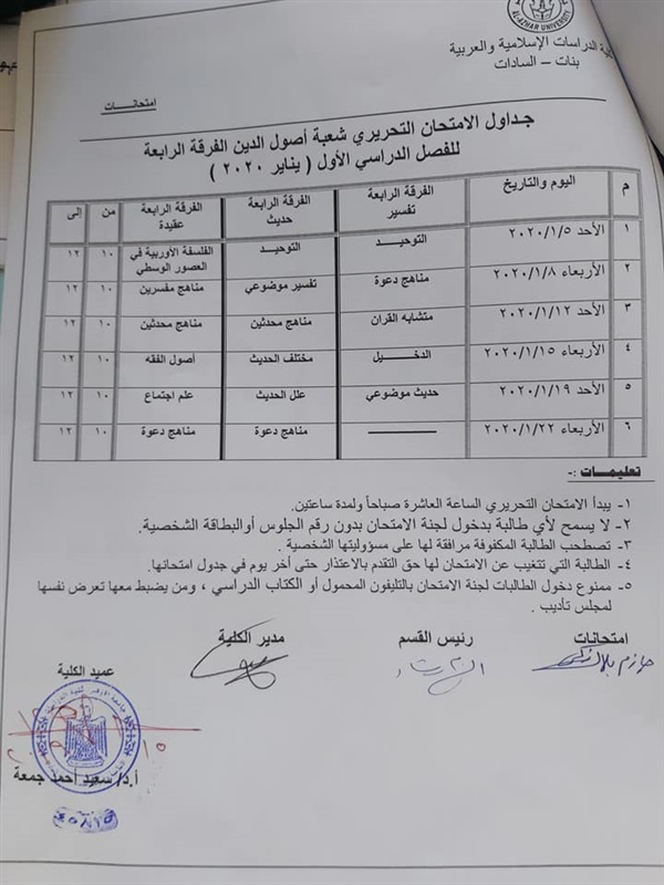 امتحانات جامعة الأزهر.. جدول الدور الأول لكلية "دراسات" المنوفية