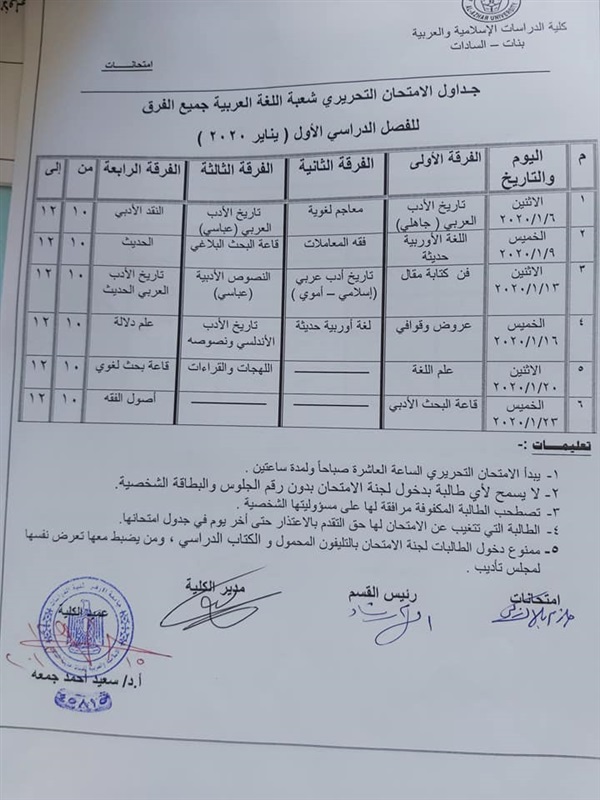 جديرًا بالذكر، أنه تبدا امتحانات التخلفات فى الرابع والعشرون من شهر ديسمبر الجارى حتى الخامس من شهر يناير، وذلك ايضًا وفقًا للجدول المعلن من قبل ادارة الجامعة فى العام الدراسى الحالى.