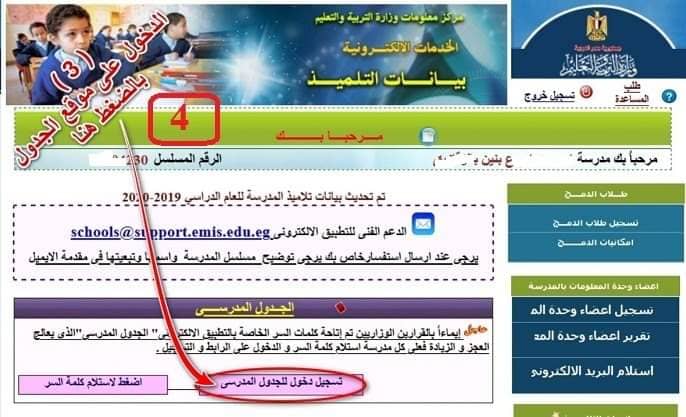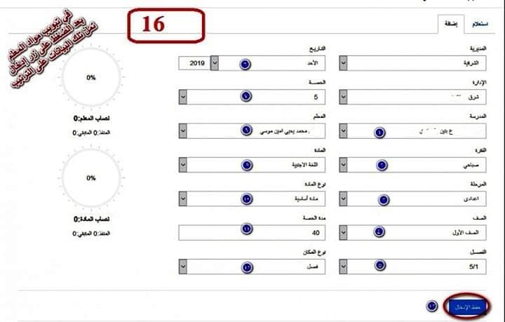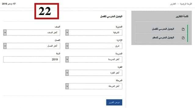 ويمكن معرفة كيفية تسجيل الجدول عبر برنامج الجدول المدرسي الموجود على صفحة استمارة التلميذ باتباع الخطوات المحددة بالصور التالية: