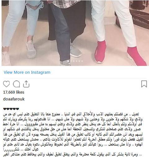 إنما كل حد يدخل ينظر علي ولادى وعلي لبسهم ده مش مقبول، انا حرة احط صور ولادى