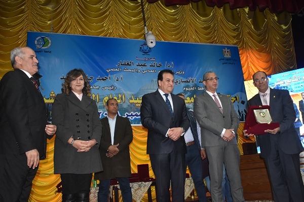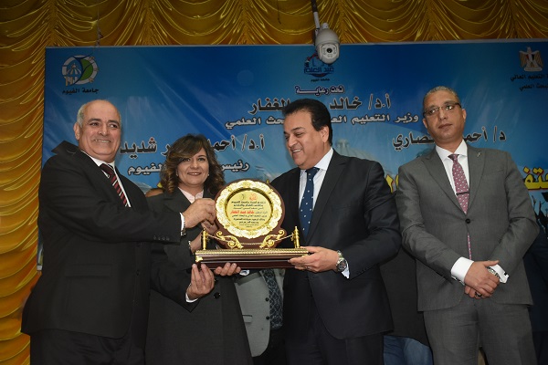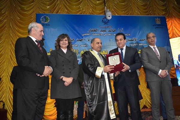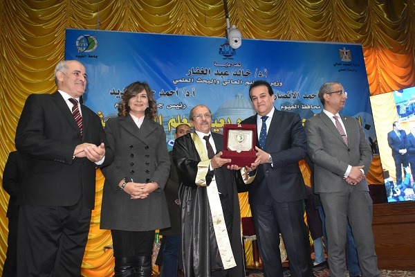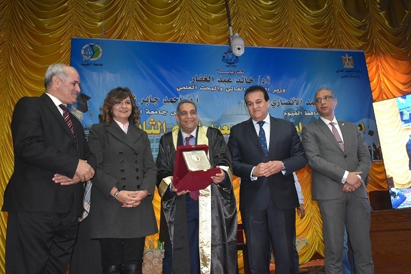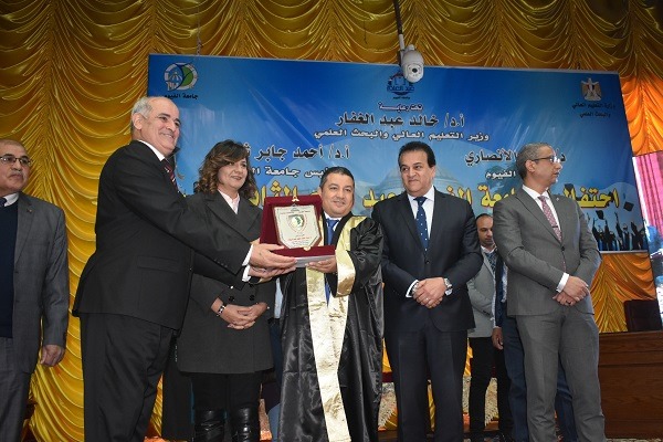 وتم تكريم رئيس جامعة الفيوم الأسبق ورئيس الجامعة