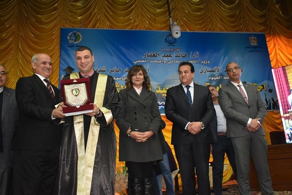 في رحاب جامعة الفيوم خلال احتفالية عيد العلم الثاني عشر والذي يتم فيه تكريم أبناءها