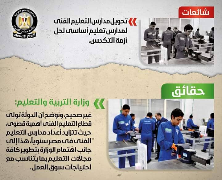 أوضحت وزارة التربية والتعليم والتعليم الفني حقيقة ما تم تداوله حول تحويل مدارس التعليم الفني لمدارس تعليم