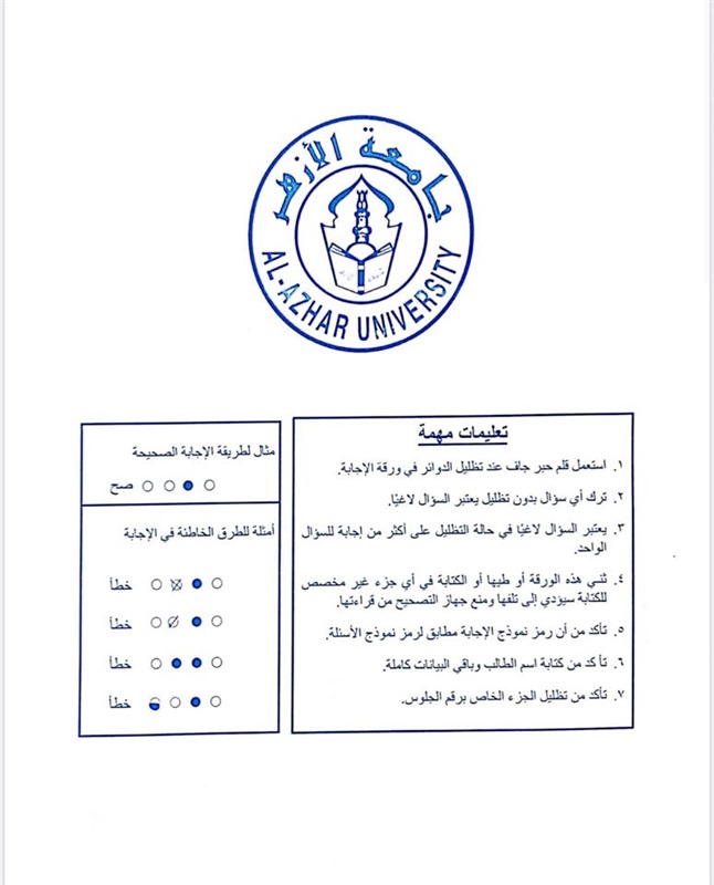 بالصور.. جامعة الأزهر توضح كيفية الإجابة على "البابل شيت"