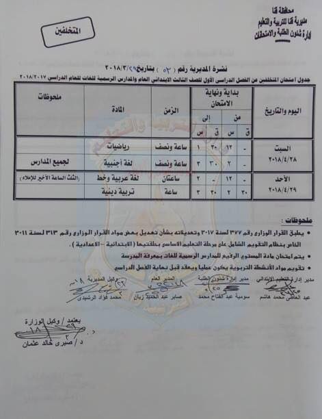 وكيل وزارة التربية والتعليم بقنا، إن الامتحانات المرحلة الابتدائية تبدأ يوم ٢٨ أبريل،