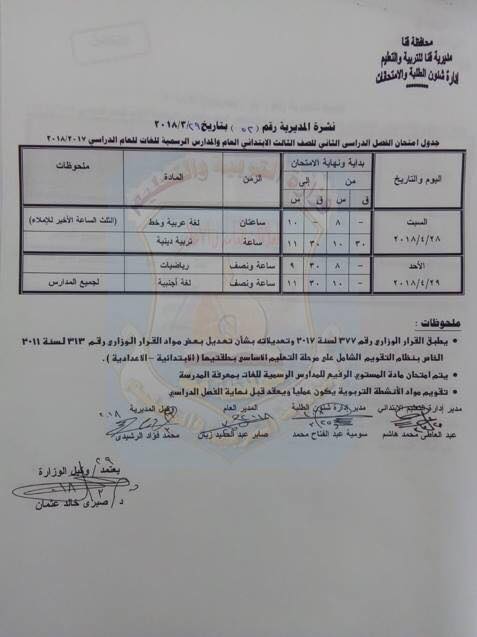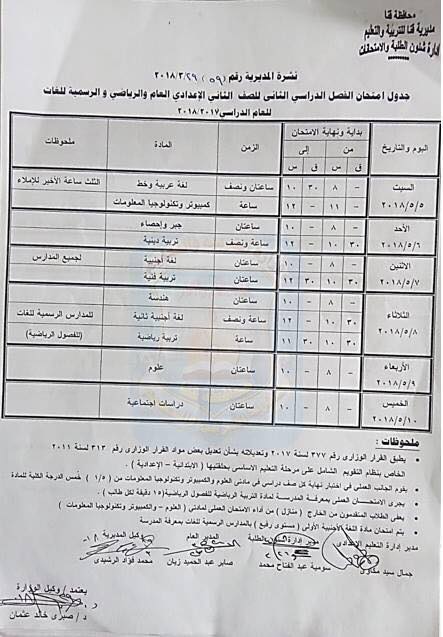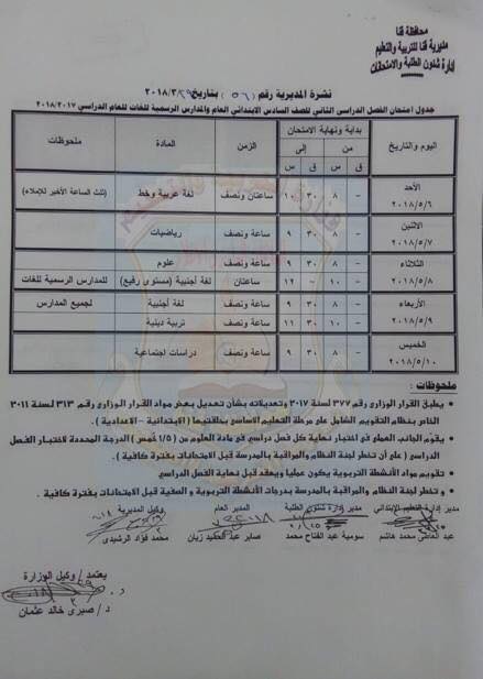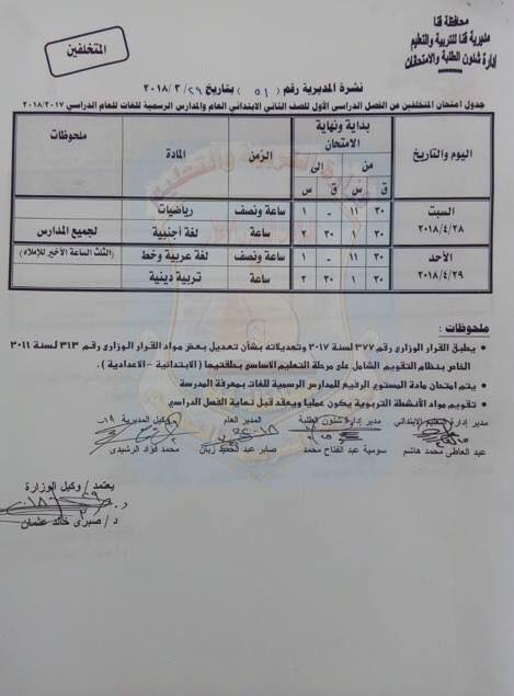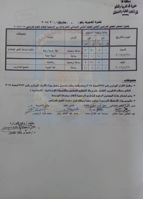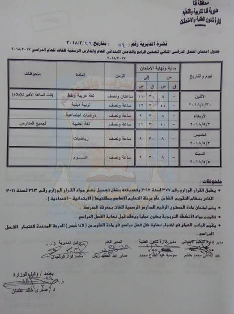 بالصور "كشكول" ينشر جداول امتحانات صفوف التعليم الأساسي بقنا