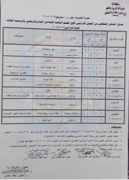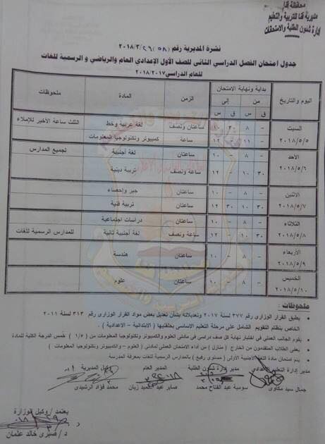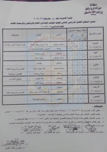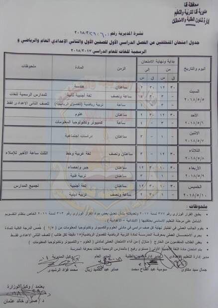 والشهادة الإعدادية يوم ١٢ مايو.