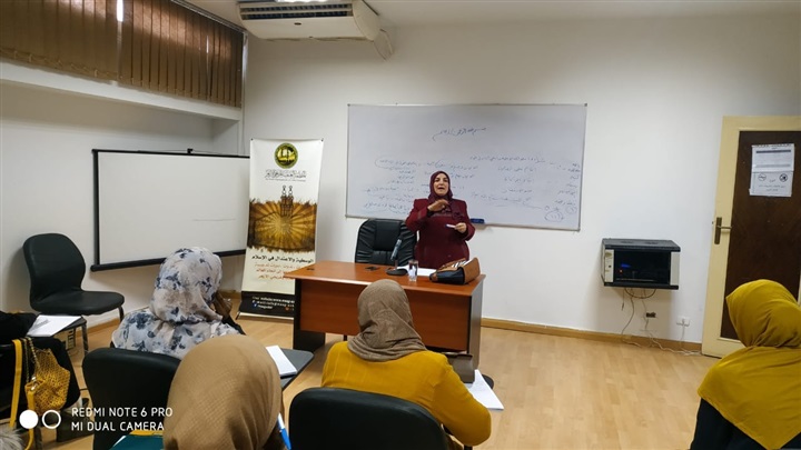 جاء ذلك خلال محاضرتها عن " العلاقة بين العقيدة الإسلامية والسلوك القويم"، لواعظات ليبيا المتدربات بمقر المنظمة العالمية لخريجى الأزهر، فى دورتها العلمية التاسعة.
