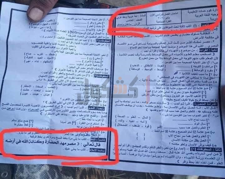 تداول نشطاء مواقع التواصل الاجتماعي فيس بوك صورة لامتحان اللغة العربية بإدارة كوم حمادة التعليمية للصف الخامس الإبتدائي، به خطأ فادح، وهو تحريف للآية قرأنية"