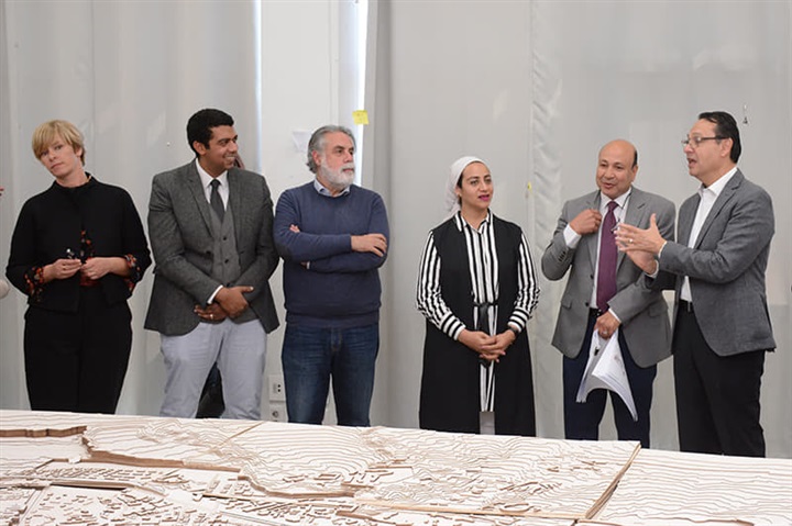 تفقد الدكتور أشرف منصور رئيس مجلس أمناء الجامعة الألمانية بالقاهرة معرض مشروعات تخرج طلاب المرحلة الدراسية الخامسة ببرنامج الهندسة المعمارية والتصميم الحضري بالجامعة الخاص بإعداد مخطط لتطوير جزء من طريق السلام بطول 4.5 كم بمدينة السلام "شرم الشيخ" ضمن مشروع تطوير خليج نعمة كجزء تطبيقى لمشروع تخرج الطلاب في إطار التعاون القائم بين الجامعة ومحافظة جنوب سيناء.