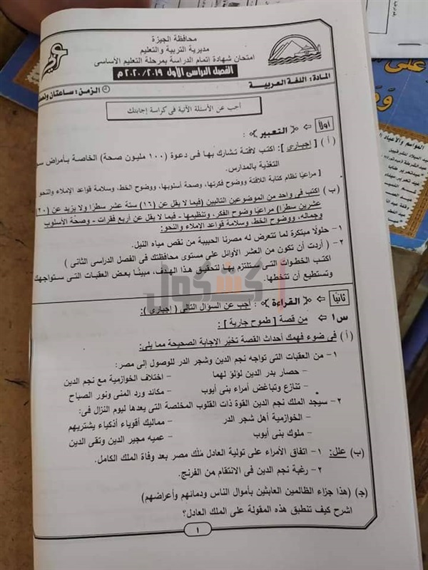 تداول أسئلة امتحان اللغة العربية بالجيزة على السوشيال ميديا (صور)