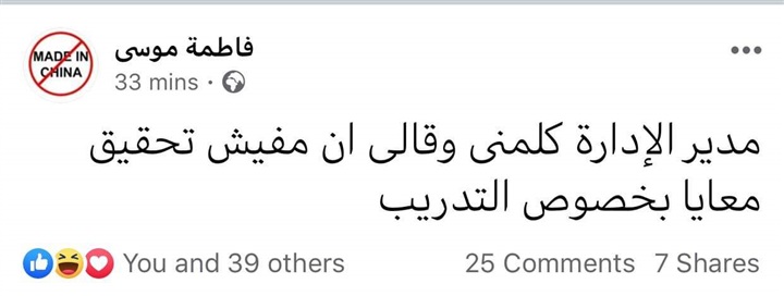 وأكدت موسى أن تعاطف نشطاء التواصل الاجتماعي كان سبب في إلغاء قرار تحويلها للتحقيق، وكتبت "حد من الإدارة كلمني وقالي مفيش تحقيق بخصوص التدريب"، وذلك لتعذر سفرها لحضور التدريب الإلزامي في الوزاراة صباح أمس الأربعاء، حول المشاركة في حملة الكشف المبكر عن سرطان الثدي، التي تنظمها وزارة الصحة.