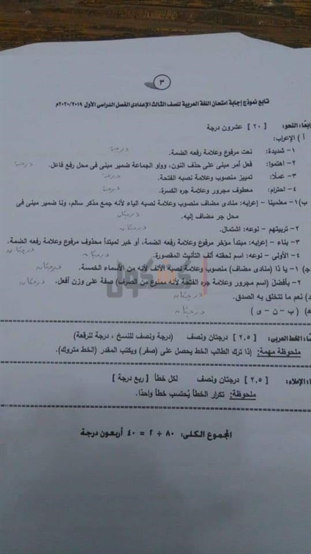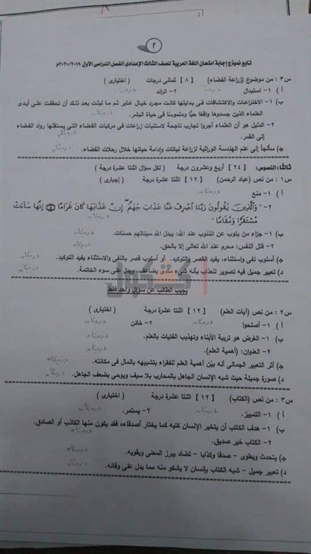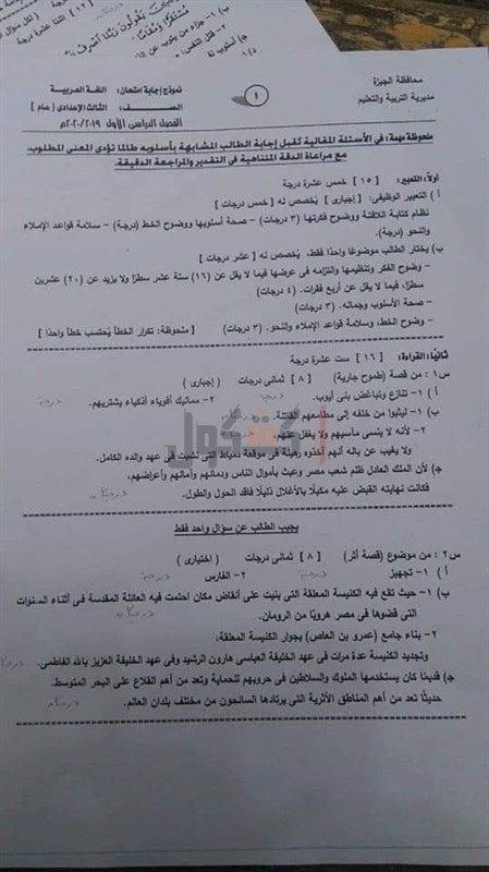 ننشر نموذج إجابات عربي الشهادة الإعدادية بالجيزة