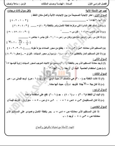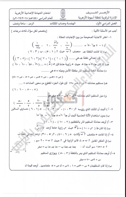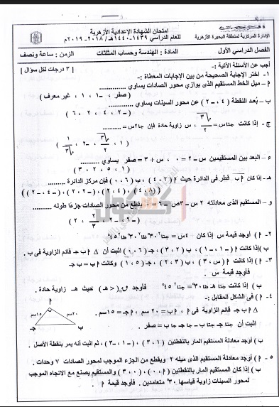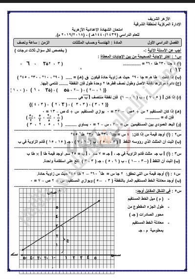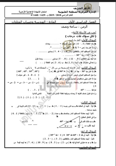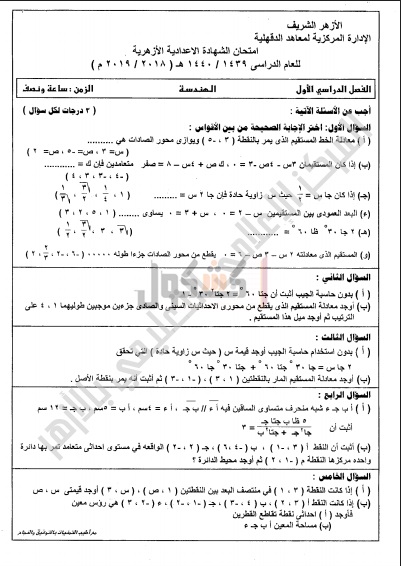 امتحانات سابقة لمادة "الهندسة" للشهادة الإعدادية الأزهرية