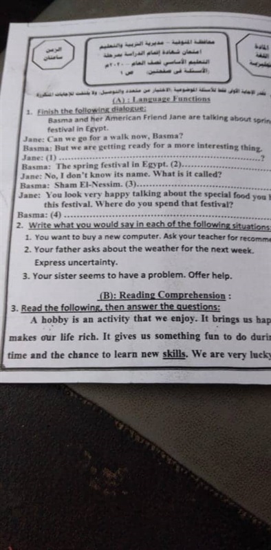 تداولت صفحات السوشيال ميديا صورة من امتحان اللغة الإنجليزية، لطلاب الشهادة الإعدادية ، بمحافظة المنوفية، قبل بدء الامتحان بساعة، وادعى البعض أنه تم تسريب الامتحان قبل دخول الطلاب للجان، ولم يتسن لكشكول التأكد من صحة النموذج المتداول على مواقع التواصل الاجتماعى، وما إذا كان هو الامتحان الفعلى لطلاب الشهادة الإعدادية أم أنه نموذج " مفبرك"