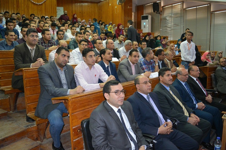 الكلية والدكتور رمضان حميدة عميد الكلية السابق.