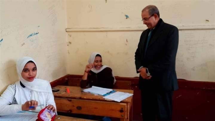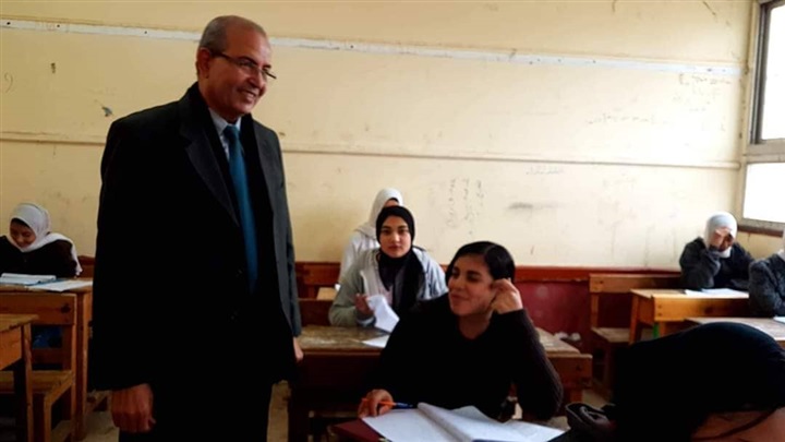 "باهى" يتفقد طالبات جمال عبد الناصر الإعدادية للبنات أثناء أدائهن الامتحان