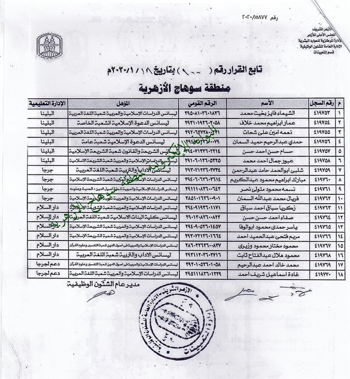 سوهاج الأزهرية تعلن أسماء المرشحين للتعاقد بوظيفة معلم مساعد قرآن كريم