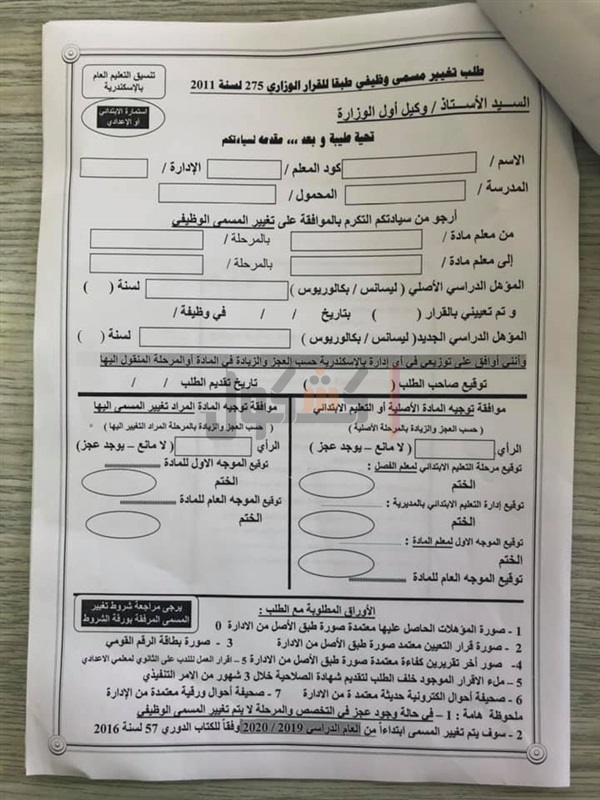 في توزيع استمارات تغيير المسمي الوظيفي عن طريق أقسامها الفرعية بالإدارات.
