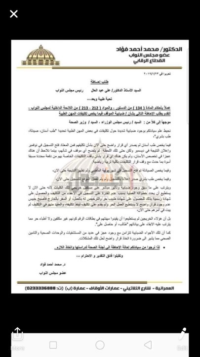 تقدم النائب محمد أحمد فؤاد عضو مجلس النواب، بطلب إحاطة إلى رئيس الوزراء والوزيرة الصحة فيما يخص ضبابية الموقف تكليفات المهن الطبية، وبال النائب في طلبه أن خناك ضبابية شديدة حول التكليفات في بعض الكهن الطبية، أبرزها " طب الأسنان، صيدلة، طب بشري"